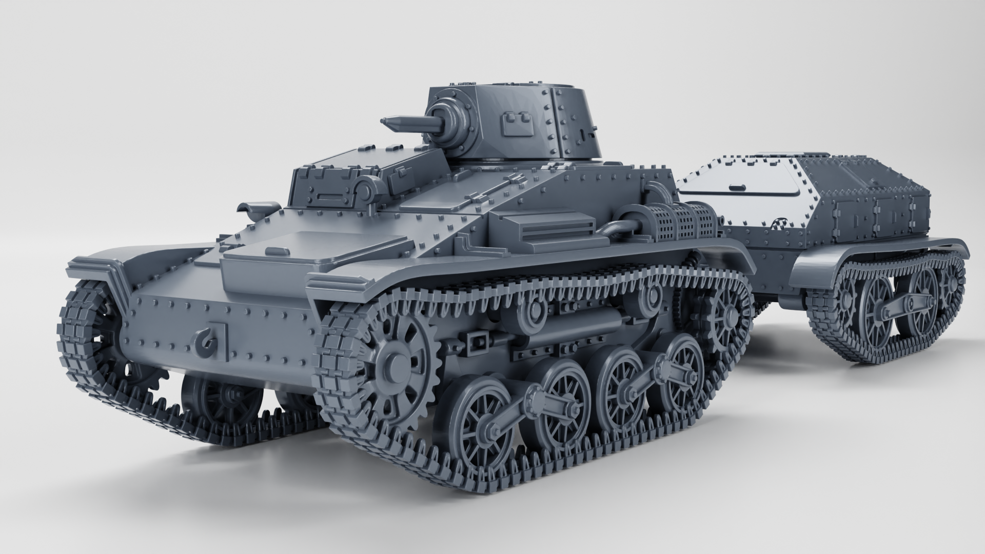 Type 94 Tankette (early) + Trailer - Japanese Army - 28mm Scale - wargame3dWargame