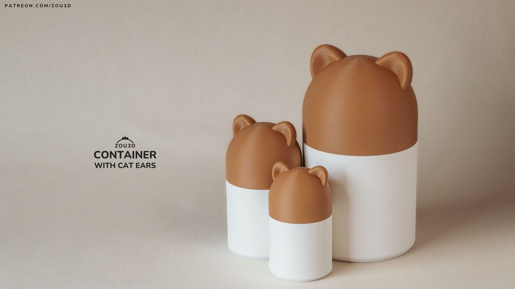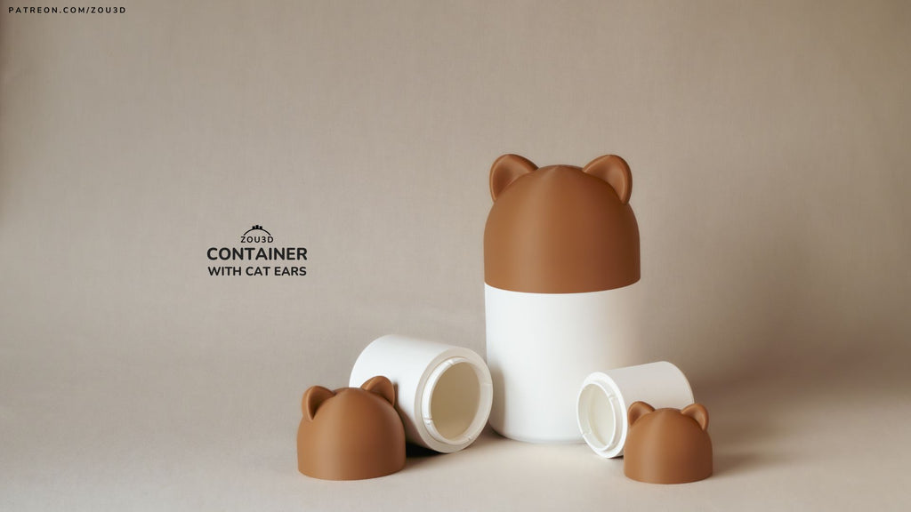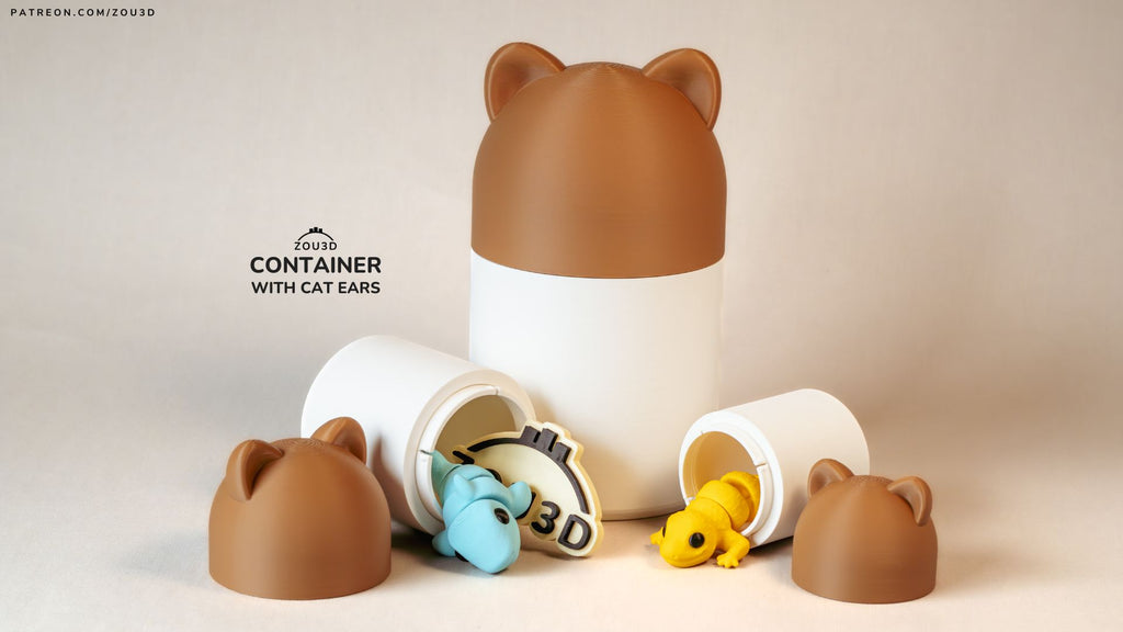 Container with Cat Ears - Articulated - Keychain - Desk Ornament - ZOU3D