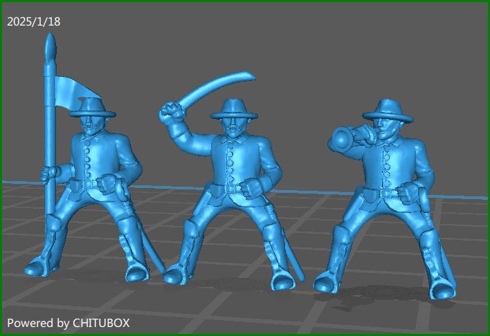 15mm ACW Cavalry Command Hat and Sack Coat - 3 Minis - MC Minis