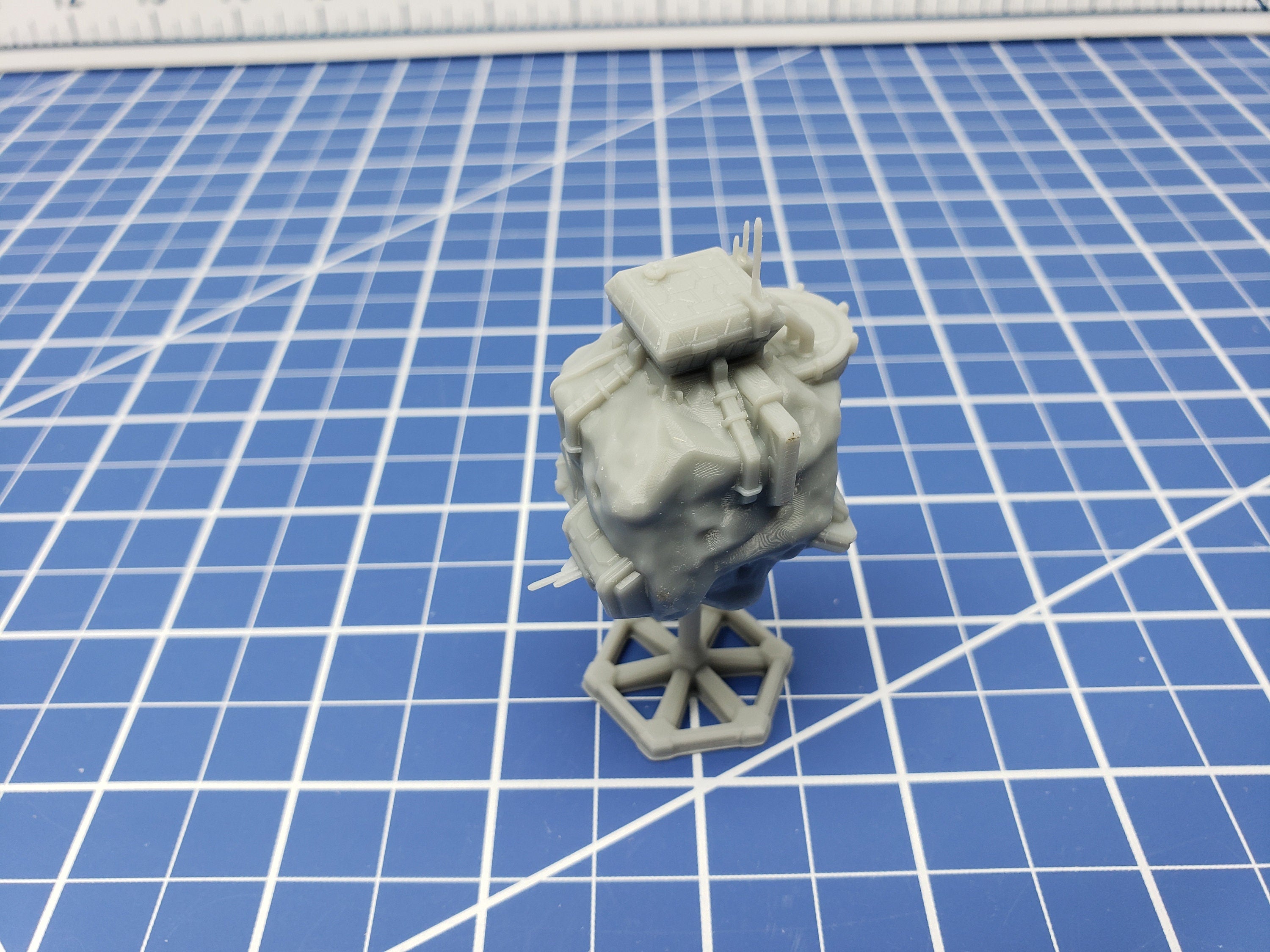 Resin Printing uses a photo curable liquid resin is placed in a vat and an LCD screen /LED array at specific wavelength (405 NM), which solidifies the liquid resin in that spot. The build plate then moves up to the next layer height (.05 mm or 5 microns in this case) and the process repeats. Each reaction attaches the 'cured' resin in the previous layer. After the printing is completed, we wash the excess resin off in an alcohol bath, and then place the model on a turntable with curing lights for several hours to harden the material to its final form. Resin printing offers a much finer level of detail/resolution at a higher material and consumable cost than other 3D printing methods. We also print all of our resin models solid, we do not hollow out the model to skimp out on quality and durability. A solid model is more durable and less likely to warp over time.