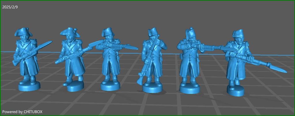 Small 15mm "w epic size" French Infantry with Greatcoat Elites Skirmishing w Bicorn 1800-07 - 6 Minis - MC Minis